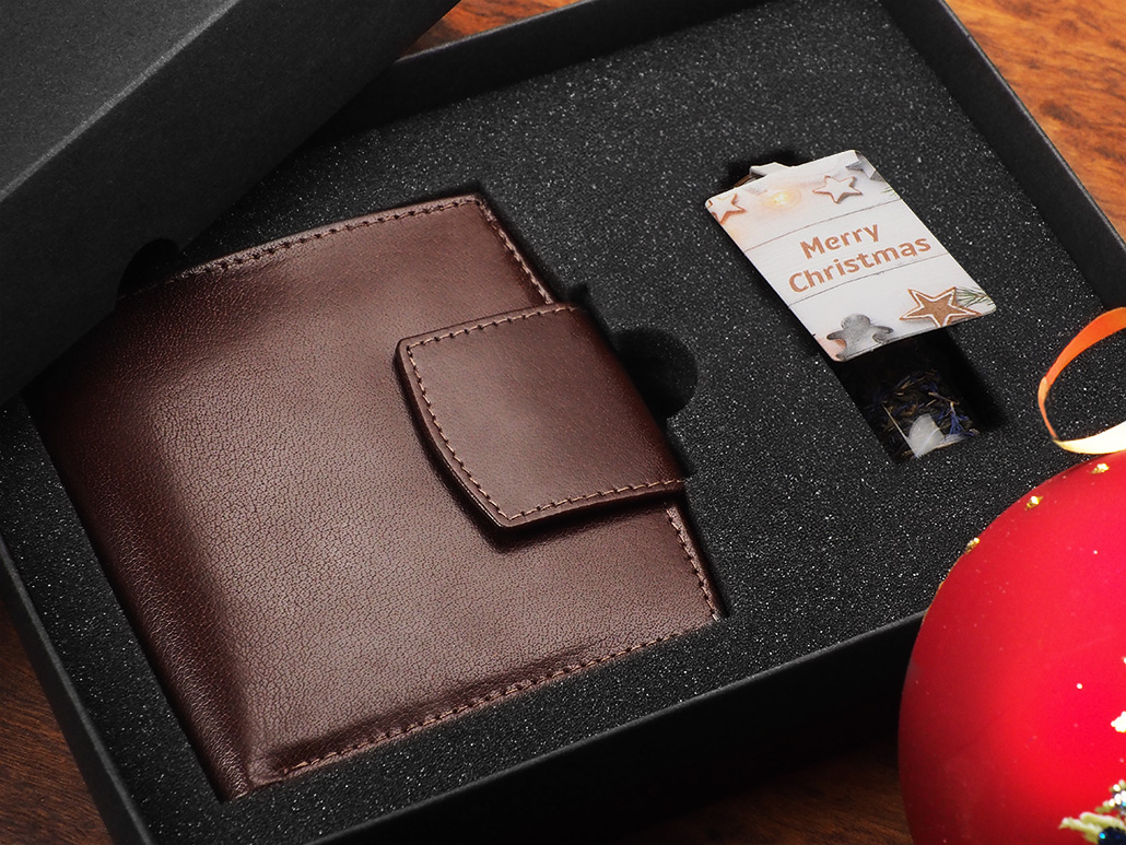 - Bőr pénztárcát tartalmaz